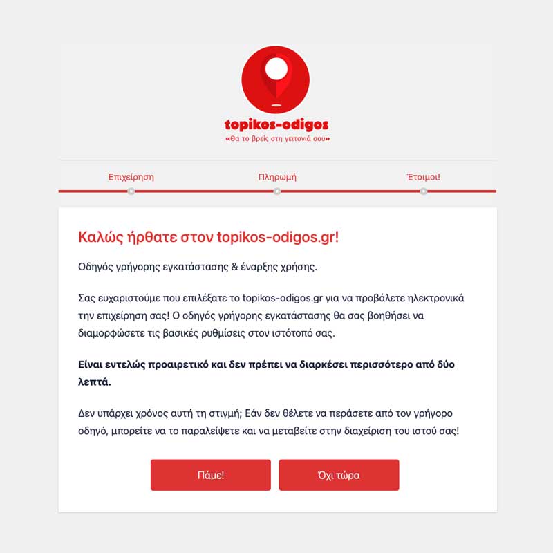 Ήρθε η ώρα να δημιουργήσεις τη δική σου σελίδα σήμερα και να μπείς στο κατάλογο του topikos-odigos.gr;
