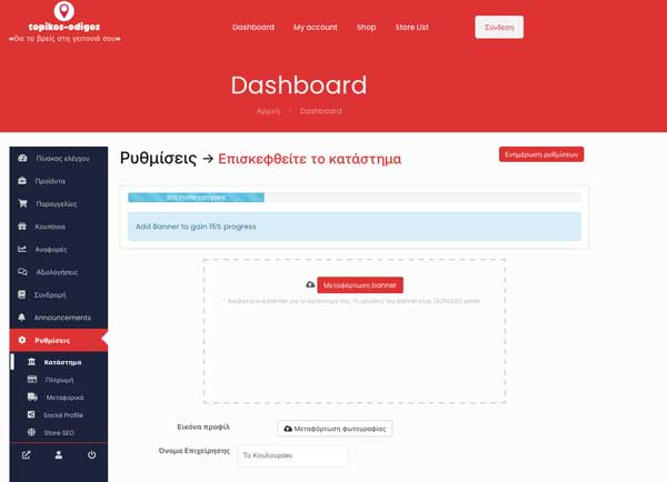 Ανέβασε μία φωτογραφία για το banner με διαστάσεις 1200px X 500px που αντιπροσωπεύει την επιχείρηση σου.
